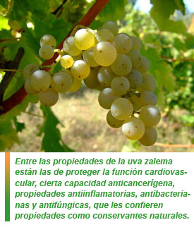 Además, entre las propiedades de la uva zalema se encuentran la protección de la función cardiovascular, cierta capacidad anticancerígena y propiedades antiinflamatorias, antibacterianas y antifúngicas.