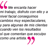C.C.: Me encanta hacer mi trabajo, disfruto con ello y a nivel facial conseguimos cambios muy espectaculares, y para algunas de mis clientas cuando ven los resultados sí que comentan que esculpo como una artista.