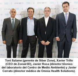 Xavier Trillo (CEO Zonair3D), Javier Roca (director técnico del laboratorio del Centro de Medio Ambiente), Javier Cerrato (director médico de Omnia Health Solutions) y Toni Salame (gerente de Siber Zone), han sido los encargados de presentar Pure Air Control, fruto de la preocupación por la contaminación ambiental actual, debido al deterioro continuo y creciente de la calidad del aire que respiramos.