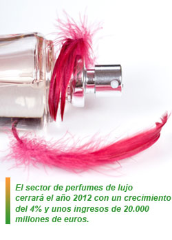 Un informe realizado por la consultoría Bain & Company titulado "Luxury Goods Worldwide Market Study", confirma que el sector de perfumes de lujo cerrará el año 2012 con un crecimiento del 4% y unos ingresos de 20.000 millones de euros. Asimismo, los productos cosméticos de alto standing también tendrán un aumento estimado del 5% y unas ventas cercanas a los 23.000 millones de euros.