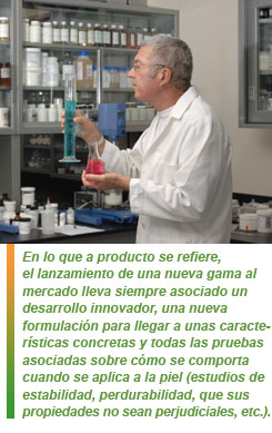 En lo que a producto se refiere, el lanzamiento de una nueva gama al mercado lleva siempre asociado un desarrollo innovador, una nueva formulación para llegar a unas características concretas y todas las pruebas asociadas sobre cómo se comporta cuando se aplica a la piel (estudios de estabilidad, perdurabilidad, que sus propiedades no sean perjudiciales, etc.).