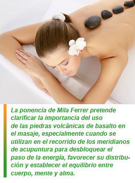 El Congreso de Estética de Cosmobelleza 2013 contará, entre sus ponentes, con Mila Ferrer, una de las profesionales del masaje más reconocidas tanto en nuestro país como fuera de nuestras fronteras. Bajo el título Masaje oriental con piedras. Original, diferente y efectivo, la ponencia de Mila Ferrer pretende clarificar la importancia del uso de las piedras volcánicas de basalto en el masaje, especialmente cuando se utilizan en el recorrido de los meridianos de acupuntura para desbloquear el paso de la energía, favorecer su distribución y establecer el equilibrio entre cuerpo, mente y alma.