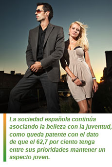 Curiosamente, la sociedad española continúa asociando la belleza con la juventud, como queda patente con el dato de que el 62,7 por ciento tenga entre sus prioridades mantener un aspecto joven -especialmente importante entre las mujeres, que llega a alcanzar el 66,6 por ciento durante el pasado 2011-.