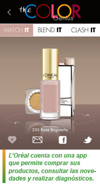 Detrás de muchas de estas aplicaciones, están lógicamente las principales marcas de belleza. Así, L'Oréal París, la primera en desarrollar este servicio móvil en nuestro país, cuenta con una app que permite comprar sus productos, consultar las novedades y realizar diagnósticos.