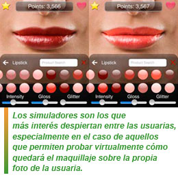 Este tipo de aplicaciones ofrecen desde diagnósticos estéticos sobre el producto más recomendable para cada persona, a actualizaciones sobre las últimas novedades en cosmética, consejos y recomendaciones de expertos maquilladores, información sobre los beneficios e inconvenientes de un determinado producto, cursos de maquillaje o simuladores. Este último servicio es uno de los que más interés despierta entre las usuarias, especialmente en el caso de aquellos que permiten probar virtualmente cómo quedará el maquillaje sobre la propia foto de la usuaria. Y es que supone una gran opción para comprar sobre seguro.