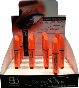 Extender Bel Eyes contiene fibras alargadoras de origen natural que se adhieren a tus pestañas; así, en un sólo trazo conseguirás que tu pestañas sean mas largas y voluminosas. Además contiene hidrolizado de keratina, que refuerza la estructura de las mismas. Todo ello presentado en un vistoso e innovador envase y con un expositor con probador que hará que tus clientas, en solo unos segundos, comprueben los resultados.