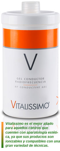 Vitalissimo es el mejor aliado para aquellos centros que cuenten con aparatología estética, ya que sus productos son ionizables y compatibles con una gran variedad de técnicas. La línea incluye un gel ECO para usar con equipos de IPL y/o láser, así como un gel conductor para usar con equipos de radiofrecuencia o un gel anticelulítico corporal para trabajar con ultrasonidos y cavitación.