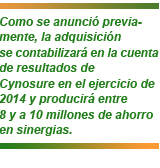 Como se anunció previamente, la adquisición se contabilizará en la cuenta de resultados de Cynosure en el ejercicio de 2014 y producirá entre 8 y a 10 millones de ahorro en sinergias. Tras el cierre, Michael Davin será el presidente y CEO, José Caruso se ha unido a la Junta Directiva de Cynosure como vicepresidente y actuará como presidente, y Timothy Baker será vicepresidente ejecutivo, director de operaciones y director financiero.