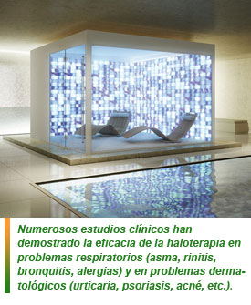 El tratamiento de haloterapia es lo mismo que unas vacaciones junto al mar: las partículas de sal provocan una limpieza continua de las vías respiratorias así como de las bacterias. Y efectivo para aquellos que sufren de alergias estacionales de las vías respiratorias.