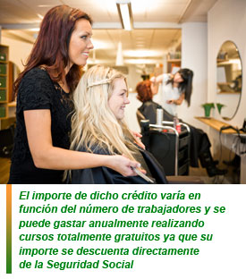 Si es usted empresa y tiene trabajadores asegurados, dispone de un crédito de formación anual subvencionado a través de las cuotas de la Seguridad Social. Este crédito lo puede gastar anualmente realizando cursos para sus trabajadores, los cuales son totalmente gratuitos para usted ya que su importe se descuenta directamente de la Seguridad Social.