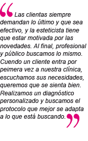 C.Á.: Muchísimo. Las clientas siempre demandan lo último y que sea efectivo, y la esteticista tiene que estar motivada por las novedades. Al final, profesional y público buscamos lo mismo.
