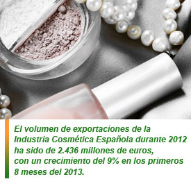 Estos datos avalan la evolución ascendente del sector cosmético español fuera de nuestras fronteras, anotando un volumen de exportación durante 2012 de 2.436 millones de euros y con un crecimiento del 9% en los primeros 8 meses del 2013.
