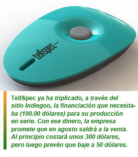 TellSpec ya ha triplicado, a través del sitio Indiegoo, la financiación que necesitaba (100.00 dólares) para su producción en serie. Con ese dinero, la empresa promete que en agosto saldrá a la venta. Al principio costará unos 300 dólares, pero luego prevén que baje a 50 dólares.
