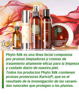 Todos los productos Phyto Silk contienen pruinas protectoras Karicia®, que es el resultado de la investigación de las ceramidas naturales que protegen a las plantas. Con gran empeño, la firma ha conseguido trasladar esta solución natural a esta sustancia única e innovadora, que protege y cuida el manto hidrolipídico (pH) de nuestra piel.