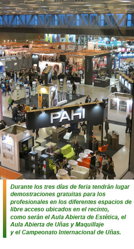 Durante los tres días de feria tendrán lugar demostraciones gratuitas para los profesionales en los diferentes espacios de libre acceso ubicados en el recinto, como serán el Aula Abierta de Estética, el Aula Abierta de Uñas y Maquillaje y el Campeonato Internacional de Uñas. En este último caso, con motivo de una nueva alianza, en concreto con Beauty Düsseldorf, una de las ferias referentes en la belleza europea, las ganadoras de este campeonato serán las representantes españolas en el certamen internacional que se celebrará en la feria alemana.
