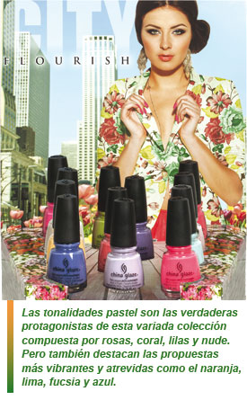 China Glaze se inspira en las tendencias para esta primavera de tejidos estampados, motivos florales y tonos pastel y neón para ofrecer 12 estallidos de color primaveral en su colección City Flourish.