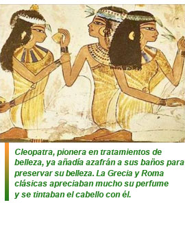 A lo largo de los siglos, han sido muchas las referencias del uso del azafrán más allá de la gastronomía, especialmente por su coloración y su aroma. La pionera en tratamientos de belleza, Cleopatra, ya lo añadía a sus baños para preservar su belleza, y la Grecia y Roma clásicas apreciaban mucho su perfume y se tintaban el cabello con él.
