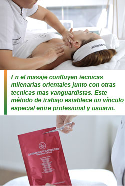El lifting cosmético empieza en la cabina. Germaine de Capuccini ha diseñado el programa de cabina Vector-3 Programa Avanzado Firmeza y Densidad para obtener lo mejor de Timexpert Lift(in) en una sola sesión. El tratamiento sigue un protocolo de aplicación profesional de efecto lifting. Consiste en un masaje original diseñado para esculpir rostro y cuello con maniobras muy precisas. Movimientos que trabajan el óvalo facial desde todos los ángulos. En el masaje confluyen técnicas milenarias orientales, como el sistema de meridianos, junto con otras técnicas más vanguardistas, inspiradas en intervenciones de medicina estética. Este novedoso método de trabajo establece un vínculo especial entre profesional y usuario.