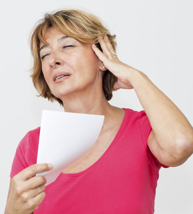 Entre los síntomas principales de la menopausia destacan los calores súbitos a raíz de la menor secreción de estrógeno. La mujer percibe una sensación repentina de calor intenso sobre la cara y la parte superior del cuerpo. Estos calores suelen durar de 30 segundos a varios minutos. En ocasiones, estos calores se acompañan de sudores y piel enrojecida en puntos como el cuello y la cara.