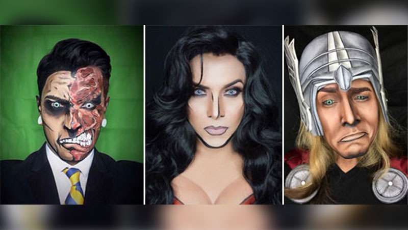 Para conseguir esos efectos tan sorprendentes, Pinal traza líneas marcadas y oscuras sirviéndose del contouring, técnica de maquillaje popularizada por Kim Kardashian. Así, el maquillador moldea e imita los contornos que hallamos en los cómics. A continuación, el californiano incorpora accesorios como pelucas fabulosas, lentes de contacto y vestuario que complementan sus habilidades con la pintura. El resultado es una transformación espectacular que rinde homenaje a los personajes de ficción que le apasionan.