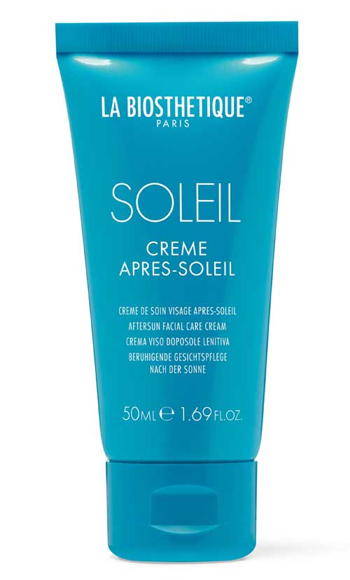 Crema facial After-Sun dermocalmante para todo tipo de pieles. Activa la regeneración celular y del ADN, evita el estrés oxidativo, refresca, proporciona hidratación y prolonga el bronceado. Aplicación especial como mascarilla after-sun después de la limpieza y la tonificación facial: aplicar una capa de un par de milímetros de espesor sobre el rostro y el cuello. Dejar actuar durante 15 minutos y luego masajear ligeramente la crema o aplicar con un disco de algodón empapado en loción facial, realizando suaves toques sobre la piel.