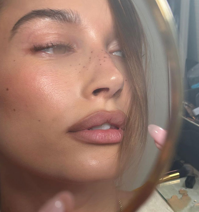 Como muestra en sus últimos selfies, Hailey apuesta por un maquillaje muy natural con pecas dibujadas, una tendencia que hemos visto también en otras celebrities.