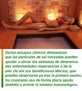 El tratamiento efectuado con la sal o haloterapia es conocido desde los tiempos de los antiguos romanos. A lo largo de siglos, dadas las numerosas propiedades terapéuticas, esta práctica ha sido realizada dentro de una cámara salina natural. Varios ensayos clínicos demuestran que las partículas de sal ionizadas pueden ayudar a aliviar los síntomas de determinadas enfermedades respiratorias o de la piel. De ahí sus beneficiosos efectos, que pueden observarse ya tras la primera sesión. Su constante uso de forma diaria ayuda también a activar el sistema inmunológico.