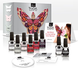 Trugel es un esmalte permanente que destaca por su duración, calidad y una aplicación rápida y fácil. Su fórmula mejorada endurece las uñas con un brillo intenso y el color dura más tiempo, protegiendo la uña natural. Se puede aplicar con lámparas LED o UV. Se elimina sin romper la uña en menos de diez minutos, sin necesidad de rellenarla o pulirla. Su gama consta de 48 colores, Bonder, Base Coat y Top Coat.