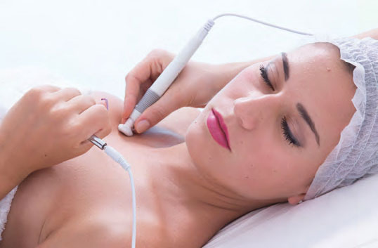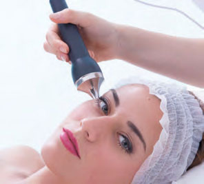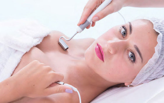 Se efectúa un masaje reactivador que, gracias a las microcorrientes producidas por el aparato y distribuidas a través de electrodos de vidrio, desarrolla un beneficioso masaje, reactivando la circulación local superficial de la piel favoreciendo, además, una acción antiséptica.