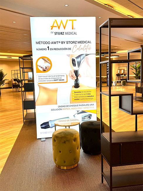 Storz Medical destacó con su sistema AWT®, una tecnología líder en ondas acústicas de choque que actúa de forma eficaz sobre la celulitis y la flacidez cutánea. Este innovador dispositivo estimula la microcirculación, mejora la elasticidad de la piel y favorece la remodelación corporal, posicionándose como una solución avanzada para tratamientos estéticos no invasivos.