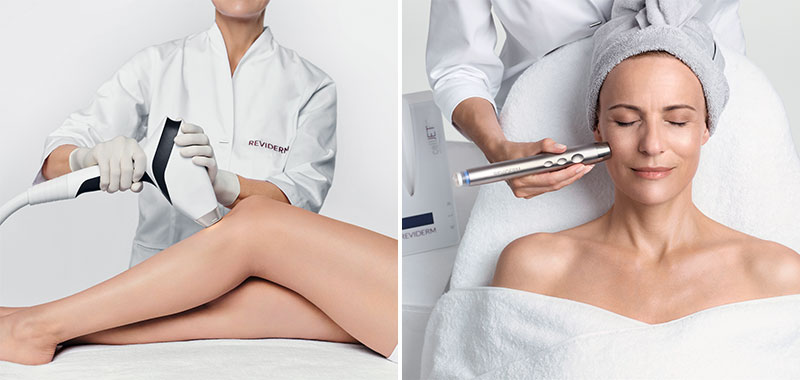 - Reviderm skinpeeler, es la combinación perfecta entre exfoliación controlada y estimulación celular profunda. Reviderm es líder mundial en microdermoabrasión y ha desarrollado un sistema que no solo elimina las células muertas de la epidermis, sino que activa mecanismos de regeneración cutánea a niveles más profundos, mejorando la textura de la piel, reduciendo arrugas y mejorando la flacidez. Además, sus ultrasonidos terapéuticos trabajan en la modulación de procesos inflamatorios y metabólicos, permitiendo abordar con precisión problemas dermatológicos como la rosácea, el acné y las cicatrices profundas.