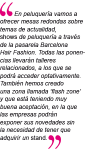 En peluquería vamos a ofrecer mesas redondas sobre temas de actualidad, shows de peluquería a través de la pasarela Barcelona Hair Fashion. Todas las ponencias llevarán talleres relacionados, a los que se podrá acceder optativamente.