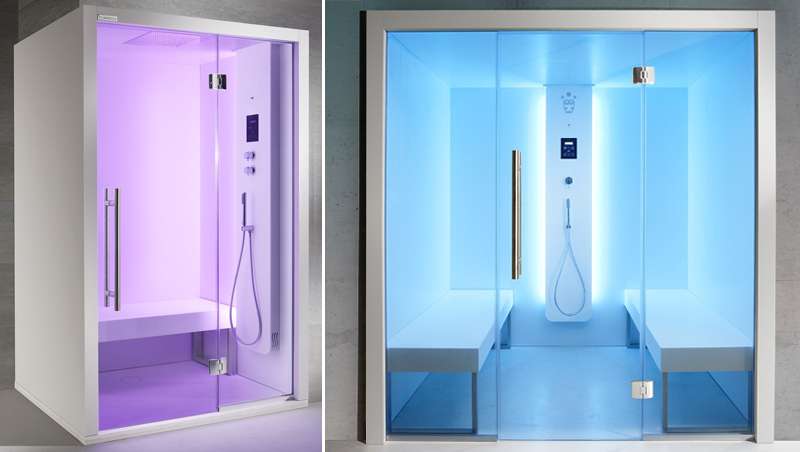 La nueva Steam Cabin, de Carmenta, es una cabina de vapor de agua que envuelve suavemente al cuerpo, proporcionándole numerosos beneficios, tanto para la salud como para el bienestar. Su alta humedad (90-95%) y temperatura media (40-45 ºC) promueven la sudoración, que es menos intensa que en un ambiente cálido y seco como el de la sauna, pero que dura más tiempo.