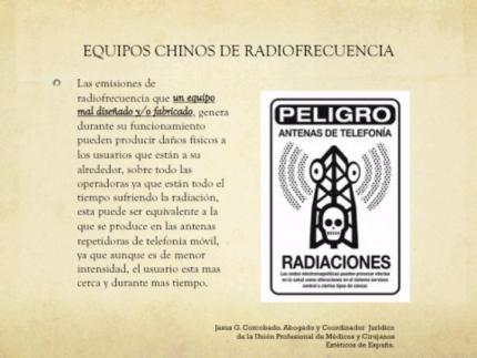 D. Jesús G. Corcobado, abogado y coordinador juridico de la Unión Profesional de Médicos y Cirujanos Estéticos de España, en representación de esta Asociación Profesional plantéa demanda penal ante los tribunales españoles por daños contra la salud de estos equipamientos.