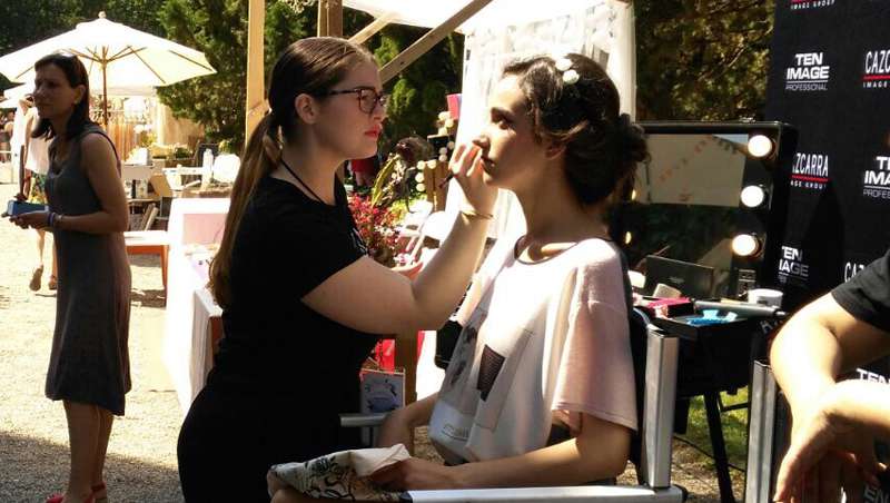 Las alumnas de maquillaje y peluquería de Cazcarra Image School han cuidado la imagen de las modelos del desfile, pero también de todos aquellos asistentes que lo desearon, en un escenario ideal para la celebración de bodas y todo tipo de eventos.