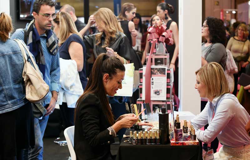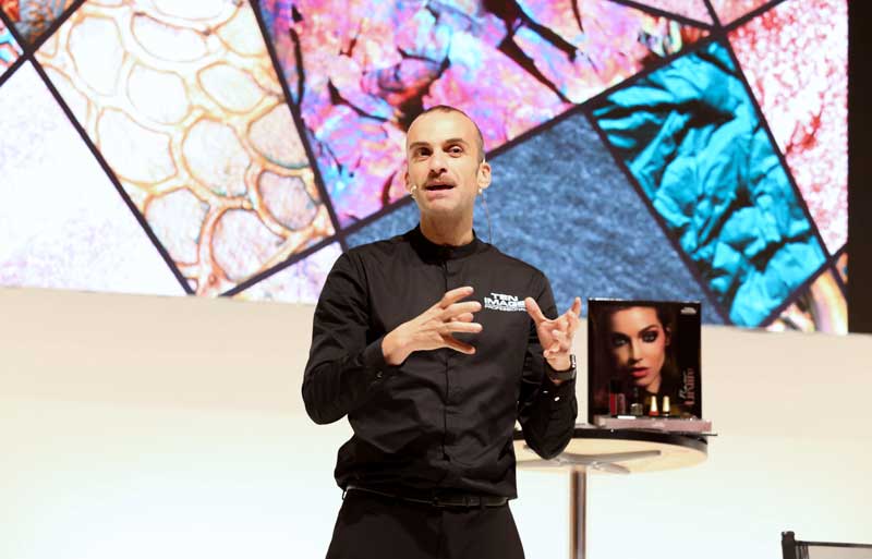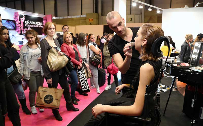 En su estand, el equipo de Cazcarra realizó constantes exhibiciones de maquillaje, a cargo de la maquilladora profesional Carolina Jiménez y el director creativo y maquillador profesional, Jordi Justribó.