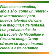 Filmets se consolida, año a año, como un referente internacional para nuevos talentos del cine y el maquillaje de fantasía. Por ello, los profesionales de la Escuela de Maquillaje y Cazcarra Image Group ofrecen su apoyo incondicional a este certamen en el que llevan colaborando desde hace años.