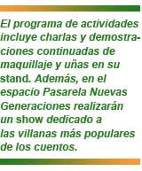 El programa de actividades incluye charlas y demostraciones con temas como La aerografía en el maquillaje de novias, el sábado 13 de febrero a las 10:30 h.; la presentación exclusiva de la nueva colección primavera-verano 2016 de Ten Image, el mismo sábado a las 17:00 h.; El maquillador crea tendencia, el domingo 14 de febrero a las 16:00 h.; y el show dedicado a las villanas más populares de los cuentos, el lunes 15 a las 10:30 h, en el espacio Pasarela Nuevas Generaciones.