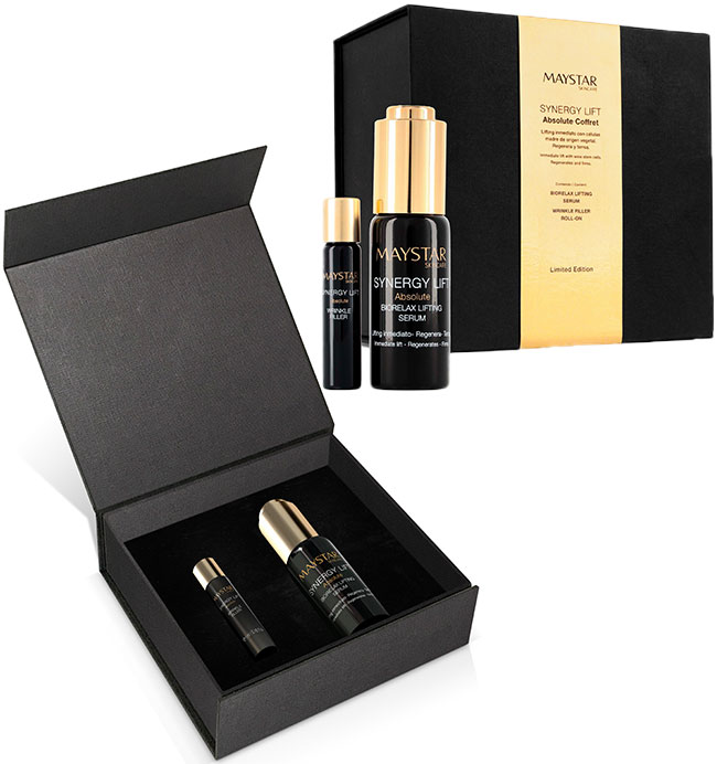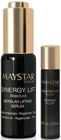 Maystar Skincare lanza dos nuevos productos dentro de su línea Synergy Lift presentados en un cofre de lujo: Synergy Lift Absolute que contiene Synergy Lift Biorelax Lifting Serum y el Synergy Lift Wrinkle Filler