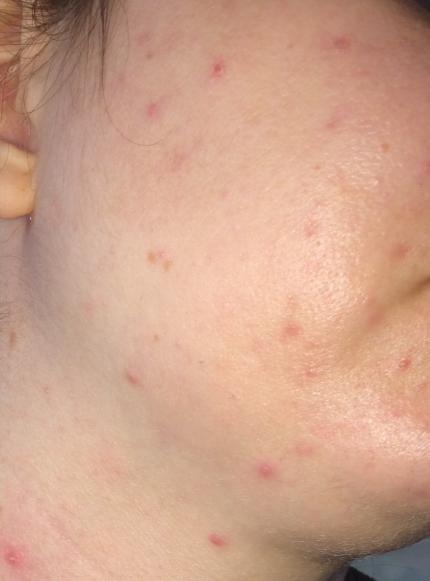 Tengo una clienta de 29 años que le salen granos por toda la cara desde hace años, sobretodo siempre en la zona de mejillas y mentón.Ha utilizado muchas cremas y ninguna le reduce éste acné, ni tratamientos como peelings, fototerapia, limpiezas...siguen saliendo. Factor hormonal influye ya que sobretodo cuando le viene el periodo se le acentúa más, es constante.