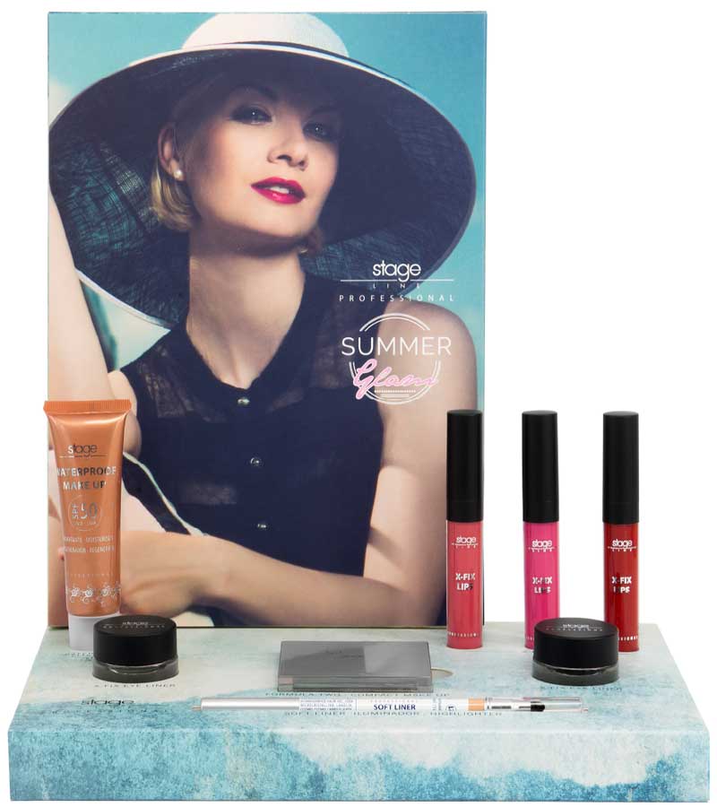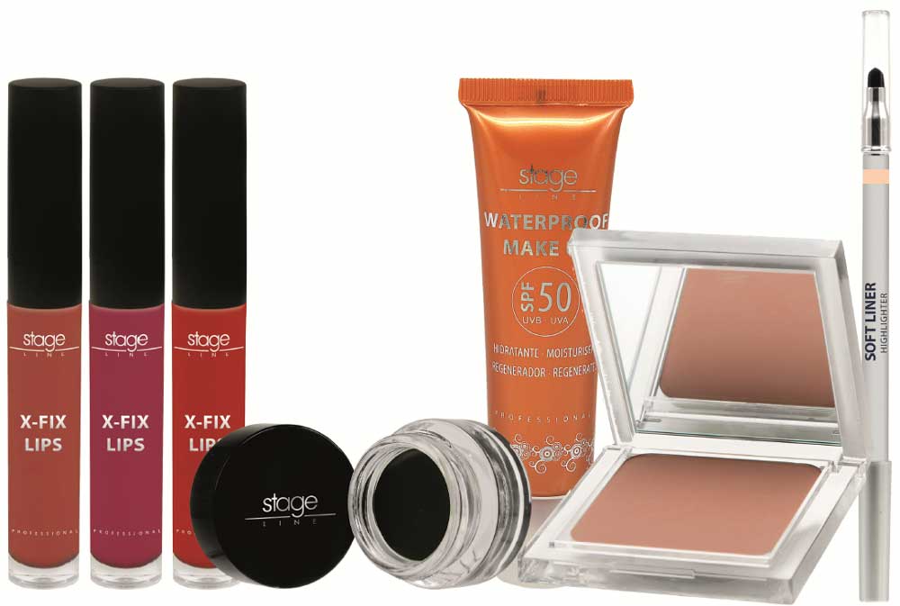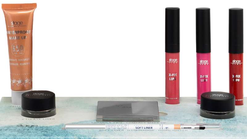La colección de Stage Line cuenta también con Waterproof Make Up SPF50: maquillaje fluido waterproof, regenera la matriz extracelular de la piel, contiene vitamina E, F y filtro solar. Tiene tres tonos distintos. Formula Two: polvos compactos ultrafinos y sedosos. Matizan la piel con naturalidad y dan color. Disponible en diferentes tonos.
