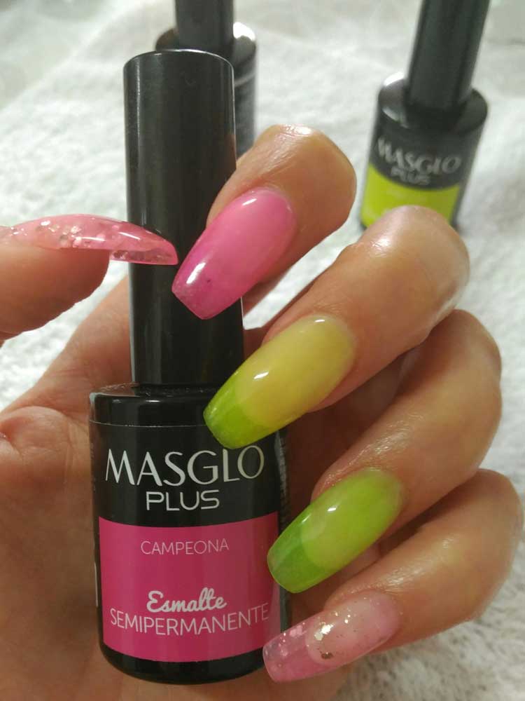 OPCIÓN 3: quiero obtener este efecto de forma duradera, con un esmaltado semipermanente. Con el esmaltado semipermanente Masglo Plus y sus 66 tonos disponibles, puedes lograrlo fácilmente: después de preparar debidamente la uña para este tipo de manicura, aplica la Base Masglo Plus y seca en lámpara. A continuación, mezcla unas gotas del tono Masglo Plus con la Base, extiende sobre la uña y seca en lámpara. Termina con el Brillo Masglo Plus, seca en lámpara y elimina la capa pegajosa con el Abrillantador Masglo Plus.