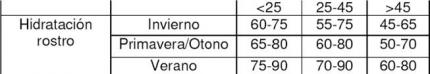 Pero cuidado estos valores normales dependen tambien de la edad, y muy especialmente de la estacion del año, no se puede tener la misma hidratacion natural en invierno, primavera/verano o en otoño.