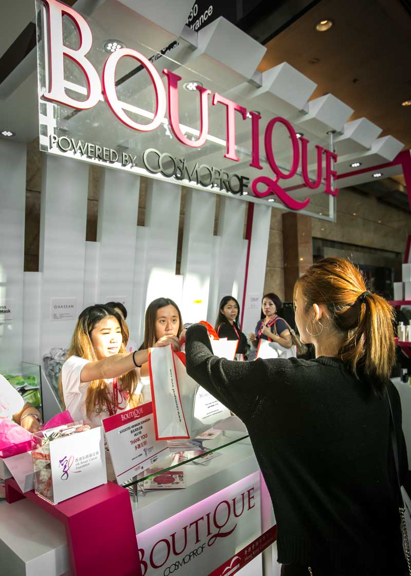 Esta iniciativa solidaria y, a la vez, barra expositora de productos de belleza celebra su cuarta edición en el HKCEC. Esta boutique ofrece un amplio surtido de productos de viaje, de mano de expositores seleccionados, que los visitantes pueden adquirir a través de una donación simbólica. Los productos se envasan en una bolsa de compra especial para la ocasión. Los beneficios obtenidos se donarán a la organización para la investigación contra el cáncer de mama Hong Kong Breast Cancer Foundation for breast cancer research.