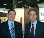 | Cazcarra con su stand. | Claude Sibony y Jesús Muñoz. | Responsables Cipsa Polux. |