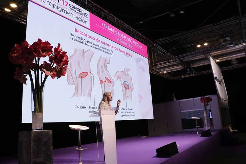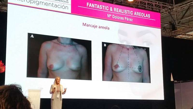 Tras la misma, María Dolores realizó en directo la micropigmentación y construcción de una areola en una paciente. Además, también dirigió una masterclass, donde se pudo apreciar, y sobre todo, aprender, su técnica para la creación de la areola, paso a paso.