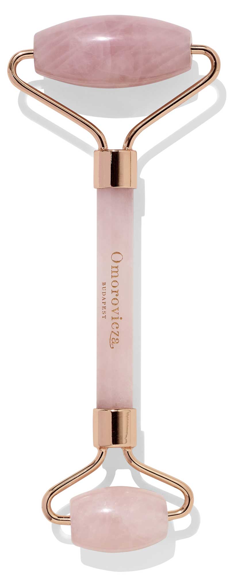 Rose Quartz Roller de Omorovicza. Los roller de cuarzo ayudan a descongestionar el rostro por su frescura, mejoran la circulación y trabajan el músculo, para que esté más definido y sustente mejor dicha grasa malar. Se trabaja siempre en sentido ascendente, y de centro del rostro hacia fuera.