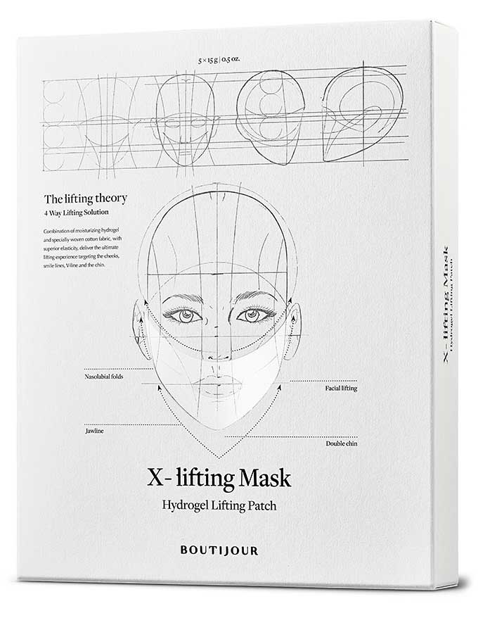 X-Lifting Mask de Boutijour. Esta mascarilla ayuda a recolocar y mantener la grasa malar y los músuculos faciales donde más se desea. Una malla resistente recoloca el rostro y lo reeduca, al tiempo que su gel-suero introduce componentes renovadores en el tejido para repulparlo.