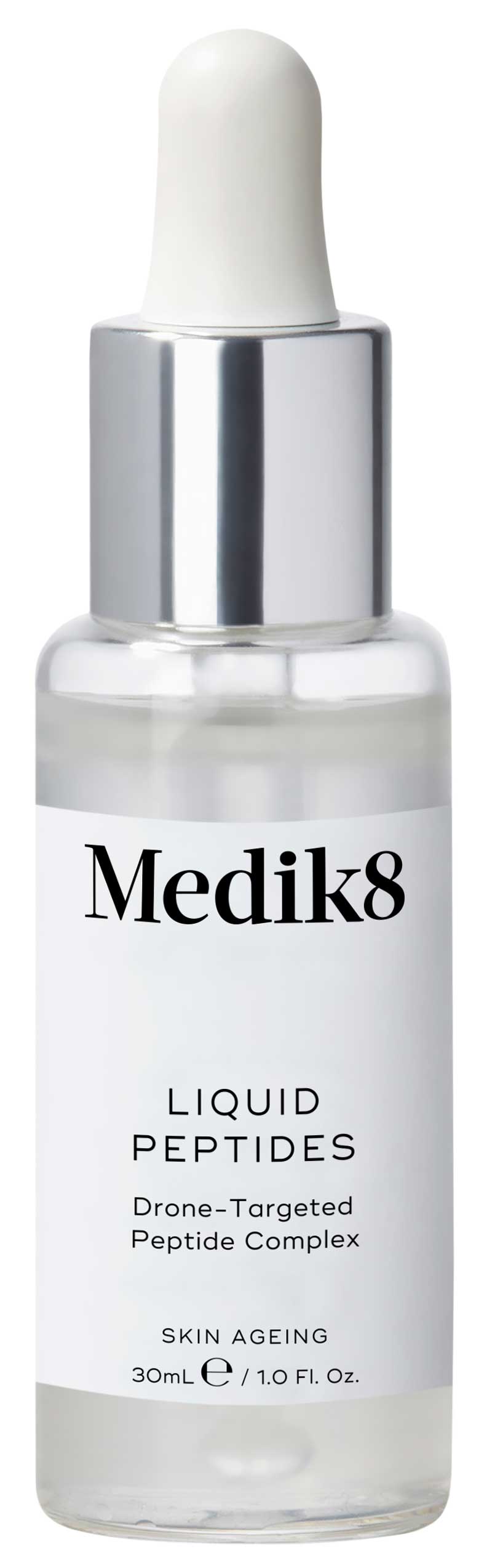Liquid Peptides de Medik8. Este suero ayuda a trabajar la musculatura al sintetizar colágeno y elastina, al tiempo que rellena y repulpa con acido hialurónico. Lleva Argirelox, conocido como un botox natural. Es un péptido innovador que minimiza la contracción muscular, manteniendo el rostro con un aspecto joven y tonificado.