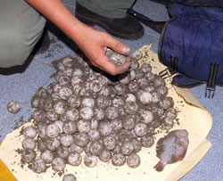 Se trata de huevos de tortuga charapa, un animal en vías de extinción, muy ricos en grasas y aceites, lo que hace que sean especialmente buscados por las empresas de fabricación de cosméticos